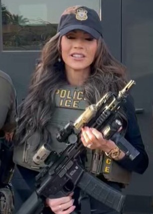 No, it’s thrilling to the MAGA base, ginned up on gun worship, decades of diligent demonization of the left, and Hollywood delusions of macho violence, that the ICE agent stands there geared up and armed, pointing his weapon.  You can practically hear his mind as it screams: EAT LEAD, YOU LIBERAL BITCH!
